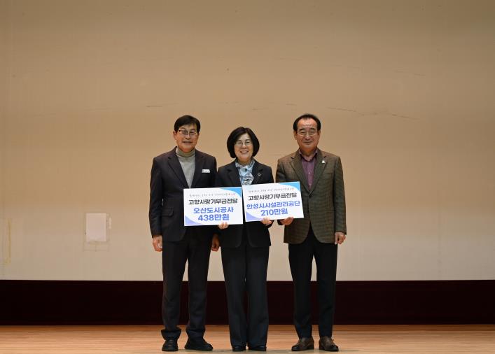 이번 전달식을 통해 안성시시설관리공단 임직원은 오산시에 9,927,700원, 안성시에 2,100,000원을 각각 기부했으며, 오산도시공사 임직원은 안성시에 4,380,000원을 기부하는 등 상호기부를 통해 지역 간 연대와 협력의 의미를 더했다.