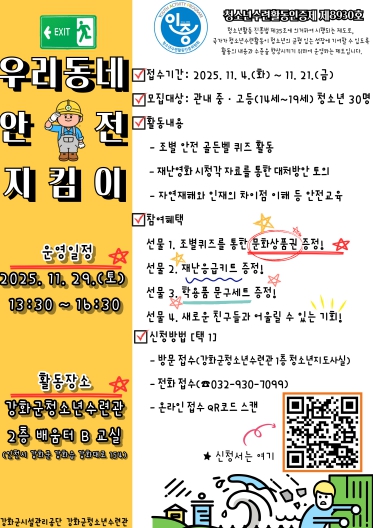 청소년수련관 관계자는 “앞으로도 청소년이 안전을 배우고 실천하기 위해 맞춤형 안전교육 기회를 꾸준히 확대해 나가겠다”고 전했다.
