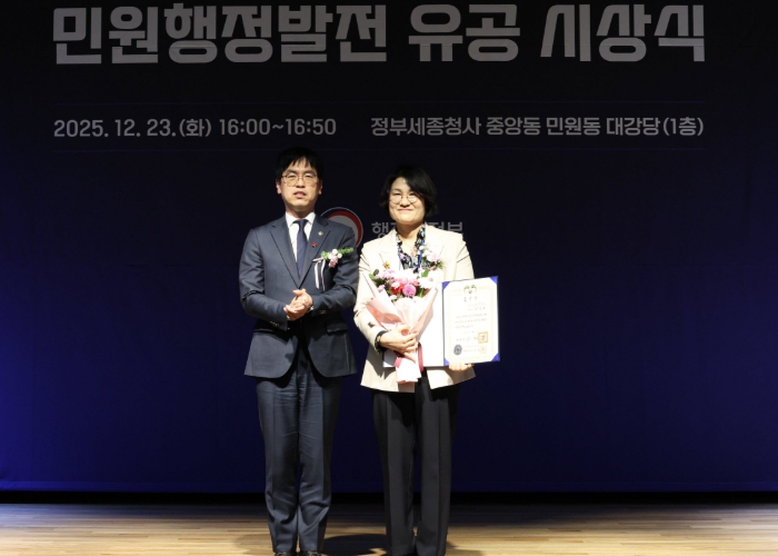 [메이저뉴스]진주시 민원여권과 이은주 민원팀장이 23일, 정부세종청사에서 열린 ‘2025년 민원행정발전 유공 시상식’에서 민원행정 발전에 기여한 공로를 인정받아 ‘민원담당자 보호분야’의 대통령 표창을 수상했다.