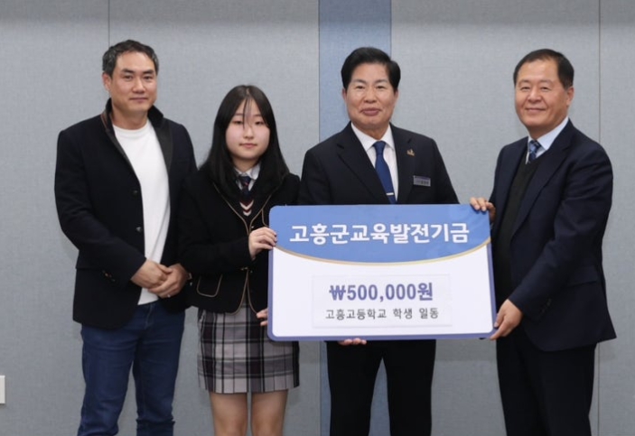 특히 고흥고등학교 학생들이 교내 스터디 카페(onedo) 운영으로 얻은 수익금 전액을 교육발전기금으로 기부해 따뜻한 기부 문화 조성에 의미를 더했다.