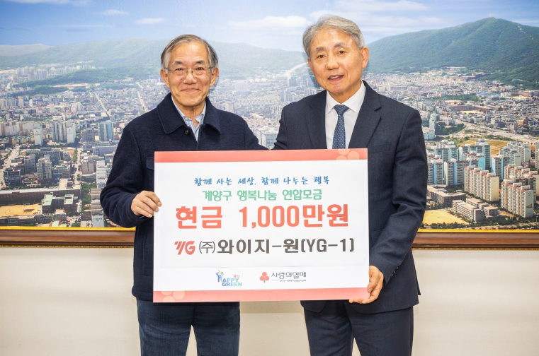 [메이저뉴스]인천광역시 계양구는 ㈜와이지-원(YG-1)이 지역사회 취약계층을 지원하기 위해 1,000만 원을 기탁했다고 5일 밝혔다.