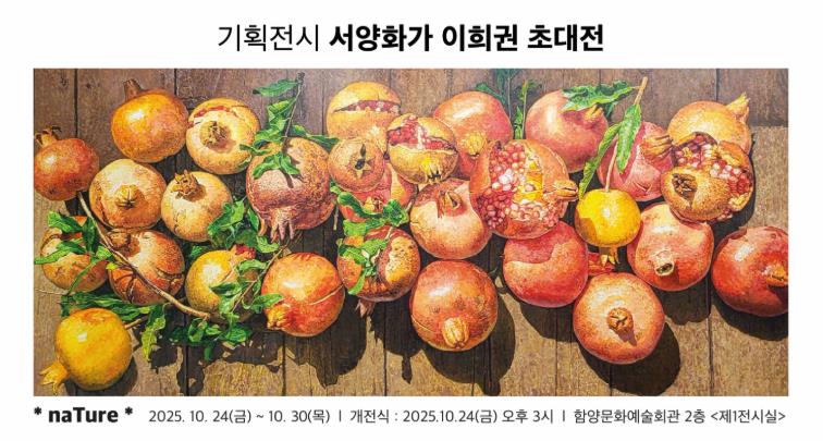 [메이저뉴스]함양군은 오는 10월 24일부터 30일까지 함양문화예술회관 제1전시실에서 2025년 기획 전시로 서양화가 이희권 작가를 초대해 ‘naTure(네이처)’를 개최한다.