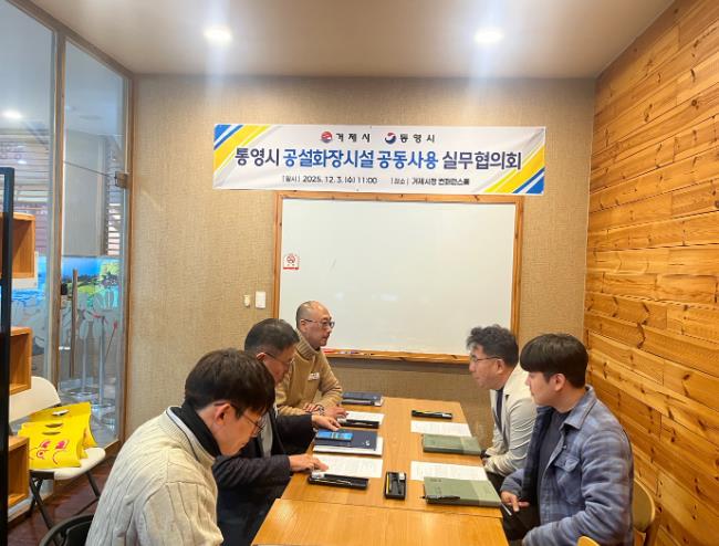 [메이저뉴스]거제시는 지난 3일 거제시청 카페더블루 컨퍼런스룸에서 통영시와 함께 ‘2025년 하반기 통영시 추모공원 공설화장시설 공동사용 실무협의회’를 개최했다.