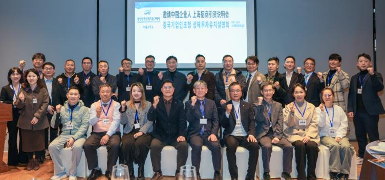 ▲ 광양만권경제자유구역청 하동사무소는 11월 25일(화) 상하이에서 현지 기업·기관 관계자 30여 명이 참석한 가운데 ‘하동지구 투자유치 설명회’를 개최했다. 참석자들이 기념 촬영을 하고 있다.