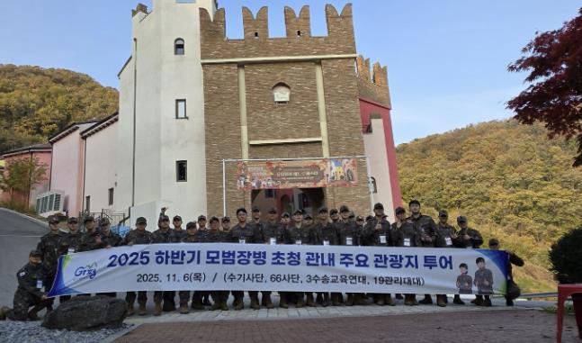 이번 투어에는 수도기계화보병사단 68명, 제66보병사단 30명, 3수송연대 14명, 제19관리대대 8명 등 총 120명의 장병이 참여했다. 이들은 가평읍 ‘카페 골든트리’에서 열린 버스킹 공연을 시작으로, 가평 레일바이크 체험과 청평면 쁘띠프랑스·이탈리아마을 관람 등 가평의 대표 관광지를 둘러보며 즐거운 하루를 보냈다.