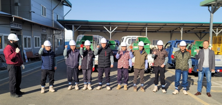 | ▲ 금산군 영농부산물 파쇄 작업반 참여자들이 기념사진을 찍고 있다. |