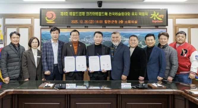 [메이저뉴스]합천군은 12월 26일 합천군청에서 ‘제4회 헤럴드경제 코리아헤럴드배 전국레슬링대회 및 제4회 전국생활체육 레슬링대회’ 유치 협약을 체결했다고 밝혔다.