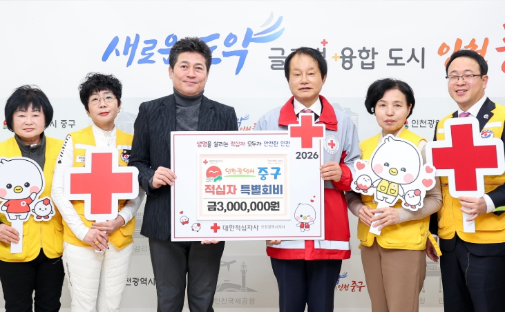 [메이저뉴스]인천시 중구는 병오년 새해를 맞이해 대한적십자사 인천지사에 ‘2026년도 적십자 특별회비’ 300만 원을 전달하며 나눔과 상생의 가치를 실천했다고 7일 밝혔다.