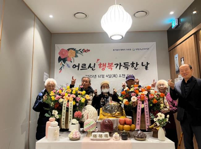 [메이저뉴스]부평구노인복지관은 12월 4일, 부평구 관내 모 음식점에서 노인 맞춤돌봄서비스 사업 참여자 중 88세 이상 어르신 40명을 대상으로 건강과 행복을 기원하는 ‘어르신 행복 가득한 날’ 행사를 성황리에 진행했다고 밝혔다.