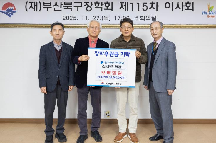 [메이저뉴스] 부산 북구는 최근 한사랑내과병원 김지원 원장이 (재)부산북구장학회에 장학기금 500만 원을 기탁했다고 밝혔다.