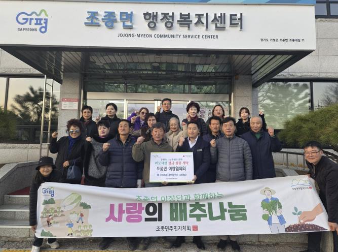[메이저뉴스]가평군 조종면 이장협의회와 주민자치회는 17일 조종면행정복지센터에 쌀 700kg을 기탁하며 지역 나눔 활동에 힘을 보탰다.