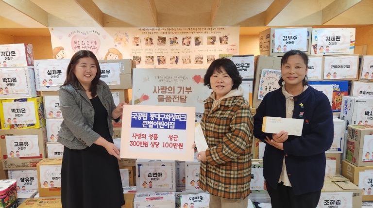 [메이저뉴스]국공립 동대구화성파크큰별 어린이집(원장 김유미)은 지난 11일, 지역사회 내 도움이 필요한 아동을 위해 후원금 100만원과 300만원 상당의 후원 물품을 동구청을 통해 관내 아동복지시설 2개소에 전달했다. 성금과 후원 물품은 어린이집의 교육활동을 통해 마련됐다.