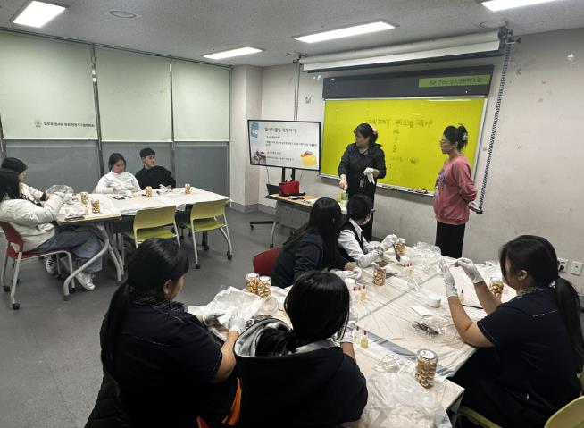 본 프로그램은 2025년 11월 10일부터 17일까지 모집을 진행해, 중학생 10명이 참여했다. 청소년문화의집 다목적교육실에서 진행된 이번 활동은 프로그램 소개 및 안전교육, 환경보호와 분리수거 교육, 업사이클링 체험, 참여 소감 공유 순으로 구성 진행됐다.