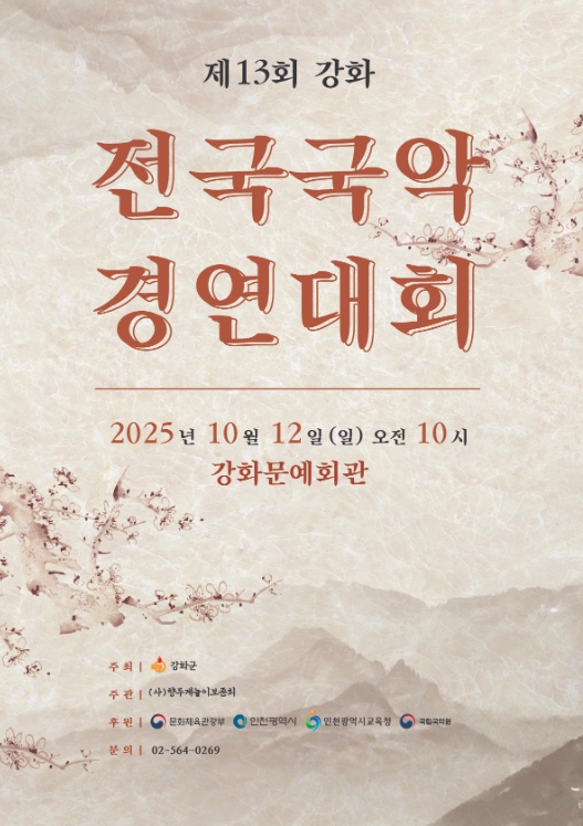 [메이저뉴스]강화군은 오는 10월 12일 강화문예회관에서 ‘제13회 강화 전국 국악경연대회’를 개최한다고 밝혔다.