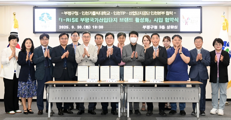 ▲ 부평구, 인천카톨릭대학교·인천테크노파크·한국산업단지공단과 ‘I-RISE 부평국가산업단지 브랜드 활성화 사업’ 업무 협약 체결 |