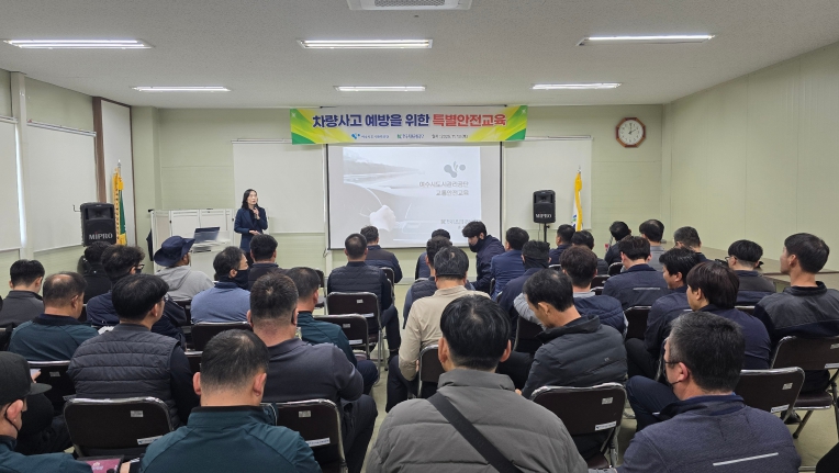 [메이저뉴스]여수시도시관리공단(이사장 송병구)은 지난 13일 청소차량 운전원 60명을 대상으로 차량사고 예방 특별안전보건교육을 실시했으며, 직원과 가족이 함께 참여하는 “가족참여형 안전보건 공모전”을 진행하여 조직 전반의 안전문화 확산에 나서고 있다고 17일 밝혔다.