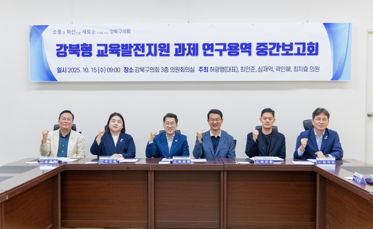 [메이저뉴스]강북구의회 의원연구단체인 ‘강북형 교육발전지원 연구회’ (대표의원 허광행)는 지난 10월 15일 의회 3층 의원회의실에서 중간보고회를 열었다.
