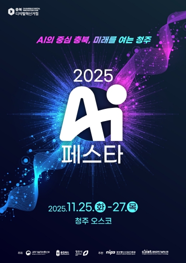 [메이저뉴스]충북도는 청주시, 충북과학기술원과 함께 오는 11월 25일부터 27일까지 청주오스코에서 'AI 페스타 2025'를 개최한다. ‘AI 중심 충북, 미래를 여는 청주!’를 슬로건으로 열리는 이번 행사는 충청권 최대 규모의 디지털 융합 축제로, MS코리아, KT, 에코프로 등 국내외 주요 기업과 도내 혁신기업 등 50여 개 기업·기관이 참여하고, 3,000여 명의 참관객이 함께할 예정이다.
