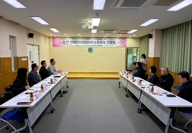논산딸기엑스포에 대한 공감대 확산과 지역 기업 참여를 통한 상생 방안 모색 등을 위해 연 이날 간담회에는 논산 일반산단과 동산 일반산단 등 주요 산단 관리사무소장 5명이 참석했다.