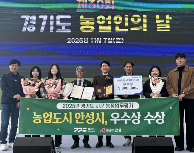 [메이저뉴스]안성시가 2025년 경기도 시·군 농정업무 평가에서 우수 기관으로 선정되어 ‘우수상’을 수상했다. 지난해 ‘장려상’을 받은데 이어 올해는 한 단계 도약한 성과를 거두며, 지역 농정 추진 역량을 다시 한번 입증했다.