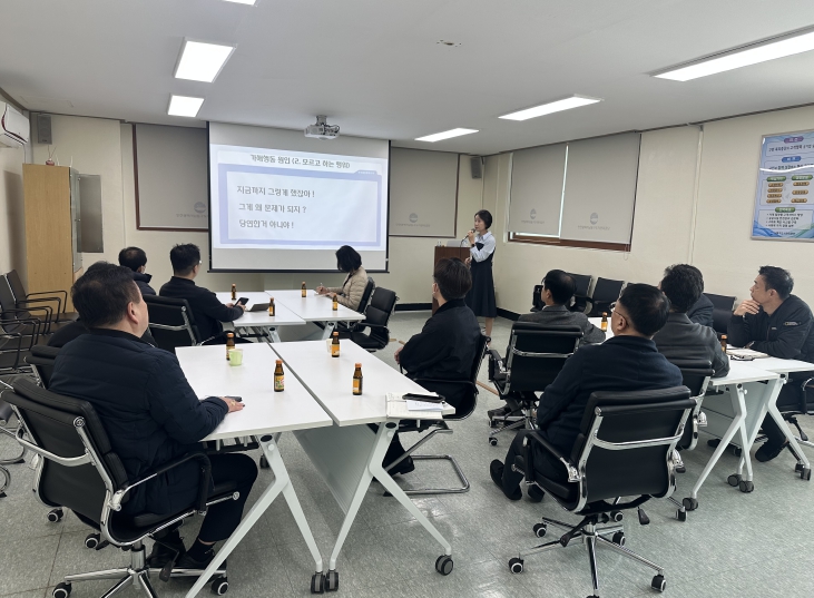 교육은 양성평등교육원 위촉 전문 강사를 초빙해 진행했으며 영상자료 시청, 토의 및 발표를 통해 4대 폭력이 개인과 조직 전반에 미치는 부정적 영향을 이해하며 성인지 감수성과 폭력 민감성을 강화했다.