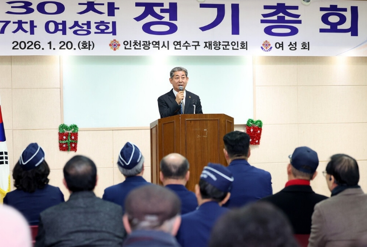 [메이저뉴스]인천광역시의회 정해권 의장(국·연수구1)은 20일 인천시 연수구 보훈회관에서 열린 ‘2026년 제30차 연수구 재향군인회 및 제27차 연수구 재향군인회 여성회 정기총회’에 참석해 회원들을 격려했다.