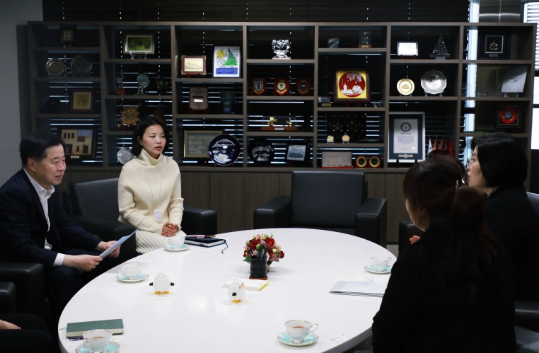 | ▲ 인천항만공사 이경규 사장이 한국백혈병소아암협회 경인지회 이주영 사무국장과 기부 관련 논의를 하고 있다 |