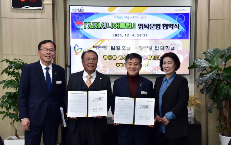 [메이저뉴스]김제시는 4일 시청에서 김제시니어클럽 위탁운영 협약식을 개최했다고 밝혔다.