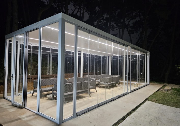 이번 사업은 노후화된 기존 쉼터를 주민 중심의 열린 공간으로 재구성하기 위해 카페형 휴게 쉼터와 정원형 화단을 조성한 것이 특징이다. 특히 파고라에 폴딩도어(접이식 유리문)를 설치하여 한여름에는 앞, 뒤 유리문 전체 면을 접어서 통풍과 개방감을 극대화했고, 한겨울에는 이용객의 체온유지를 위해 폴딩도어를 밀폐시켜 찬바람은 막으면서 주변 경관을 감상할 수 있도록 야외 카페형 분위기로 연출했다.