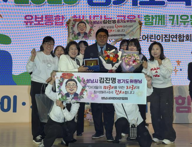 [메이저뉴스]경기도의회 여성가족평생교육위원회 김진명 의원(더불어민주당, 성남6)은 10월 30일 용인 실내체육관에서 (사)경기도어린이집연합회 주최·주관으로 열린 '2025년 경기보육인대회'에서 경기도 보육 환경 개선에 기여한 공로를 인정받아 공로패를 수상했다.