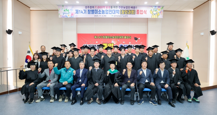 [메이저뉴스] 성주군은 지난 11월 6일 농업기술센터 대강당에서 관내 내빈과 농업인대학(참외과정) 졸업생 33명이 참석한 가운데 제14기 참별미소농업인대학 졸업식을 개최했다고 밝혔다.