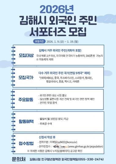 | ▲ 김해시, 2026년 제2기 외국인주민 서포터즈 모집 |