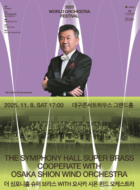 [메이저뉴스]대구콘서트하우스는 오는 11월 8일 오후 5시, 월드오케스트라페스티벌의 일환으로 ‘더 심포니홀 슈퍼 브라스 WITH 오사카 시온 윈드 오케스트라’ 공연을 개최한다.