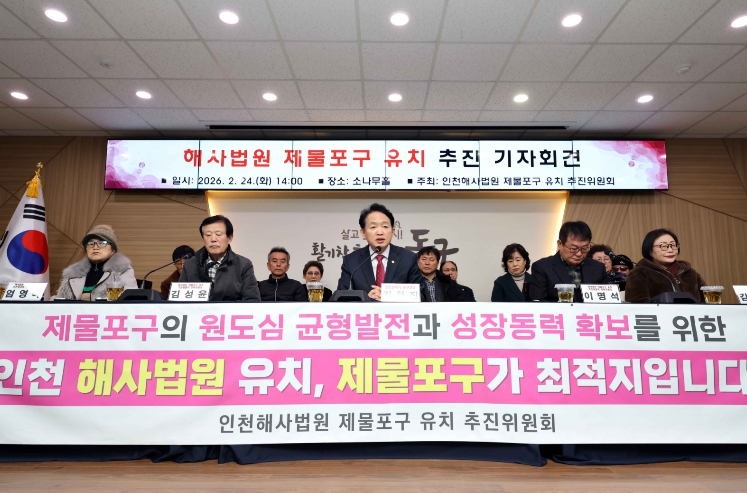 이번 기자회견은 2026년 7월 중·동구 통합으로 출범하는 ‘제물포구’의 성공적인 출범과 정착을 위해 해사법원 유치의 필요성 촉구하고, 지역사회의 공감대를 넓히기 위해 마련됐다.