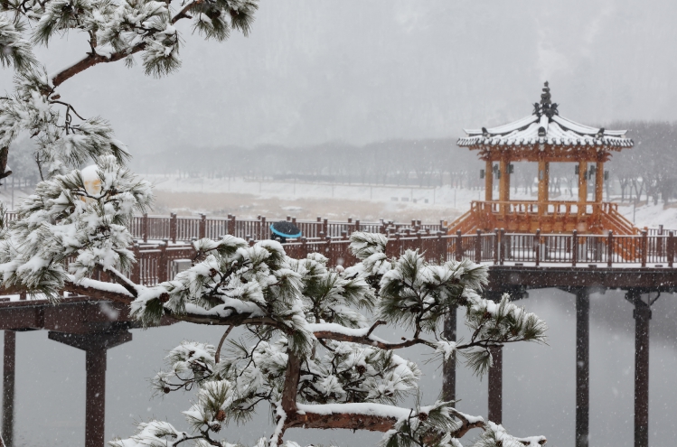 | ▲ 24일 충북 괴산군 에코브릿지에 눈이 내려앉아 겨울 설경을 연출하고 있다. |