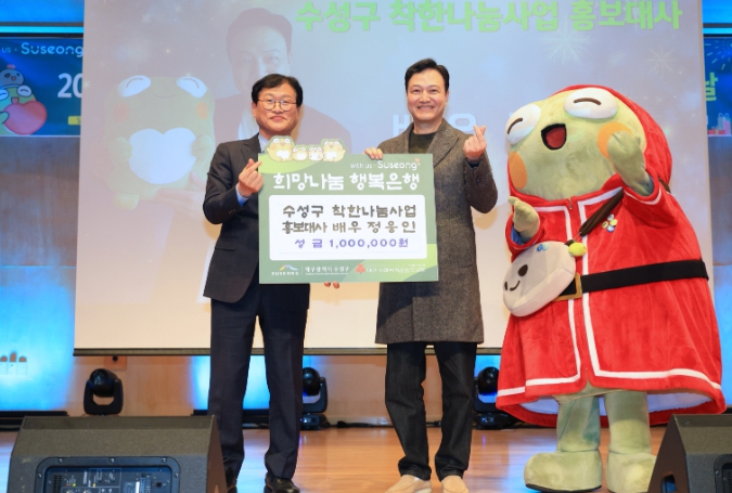 [메이저뉴스]대구 수성구 ‘착한나눔사업’ 홍보대사인 배우 정웅인 씨는 지난 16일 열린 2025년 수성구 지역사회보장협의체 ‘성과 공유 및 기부자 감사의 날’ 행사에 참석해 관내 어려운 이웃을 위해 사용해 달라며 성금 100만 원을 수성구청에 전달했다.