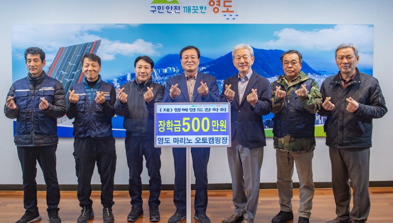 [메이저뉴스]영도 마리노 오토캠핑장(기간제근로자 일동)은 지난 12월 19일 영도구청을 방문하여 우수한 지역인재 양성을 위해 (재)행복영도장학회에 500만 원을 기탁했다.