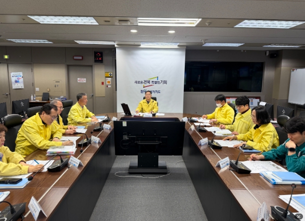 이날 회의에서는 도 관계부서와 14개 시군이 참여해 대설·한파·강풍 대책을 점검하고 대응 방안을 논의했다. 주요 대책으로는 △ 취약구간(교량, 터널, 고갯길, 경사로 등) 및 상습결빙구간 제설제 집중 살포 △ 습설대비 5대 취약분야(붕괴, 전도, 미끄러짐, 정체, 고립) 예찰 강화 및 안전조치 실시△ 한파 취약계층 관리방안 △ 한파 쉼터 및 응급대피소 개방시간 확대 △ 임시주거시설 및 구호물품 비축 점검 △ 낙하우려 시설물(간판, 나무 등) 안전조치 실시 등이 논의됐다.