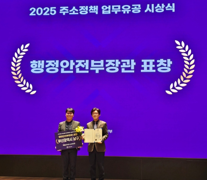 [메이저뉴스]부산광역시 남구는 행정안전부가 주관한 ‘2025년 주소정책 업무 유공’ 분야에서 우수 기관으로 선정돼 행정안전부 장관 표창을 수상하고, 특별교부세 4천만 원을 확보했다고 밝혔다.