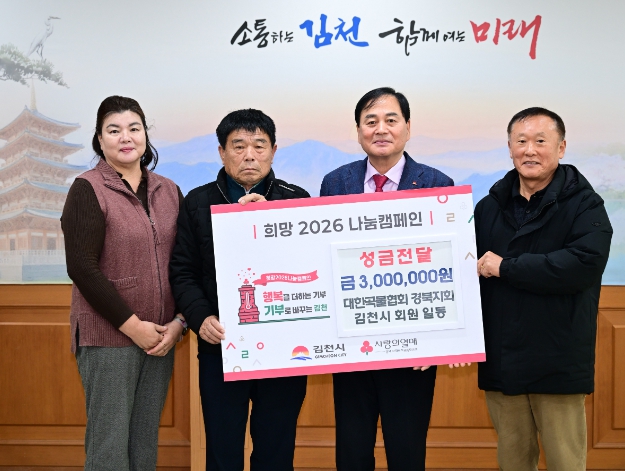 [메이저뉴스]대한곡물협회 김천시지부(지부장 윤진채)에서는 26일 김천시청을 방문해 ‘희망2026 나눔캠페인’ 성금 300만 원을 기부했다.