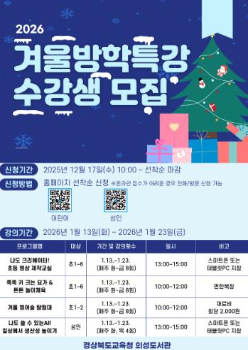 | ▲ 의성도서관, 2026 겨울방학특강 수강생 모집 |
