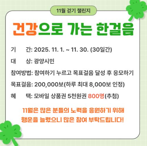▲ 광양시, 워크온 ‘건강으로 가는 한걸음 11월 걷기 챌린지’ 운영 |