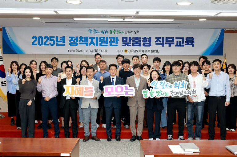 [메이저뉴스]전라남도의회는 10월 13일, 도의회 초의실에서 소속 정책지원관과 직원을 대상으로 ‘맞춤형 직무교육’을 실시했다.