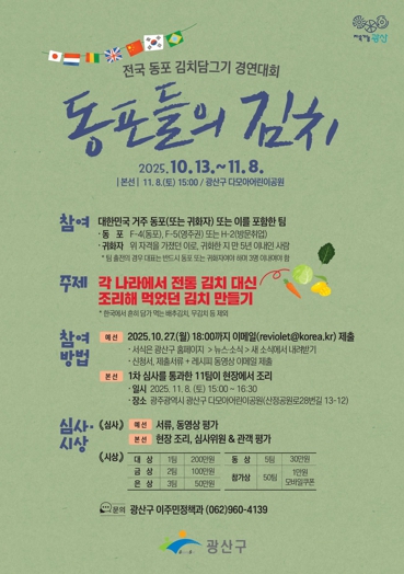 [메이저뉴스]광주 광산구가 13일부터 11월 18일까지 전국 곳곳에 거주하고 있는 동포들을 대상으로 ‘전국 동포 김치담그기 경연대회_동포들의 김치’를 개최한다.