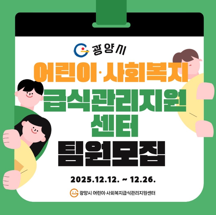 | ▲ 어린이·사회복지 급식관리지원센터, 2026년 팀원 4명 공개 채용 |
