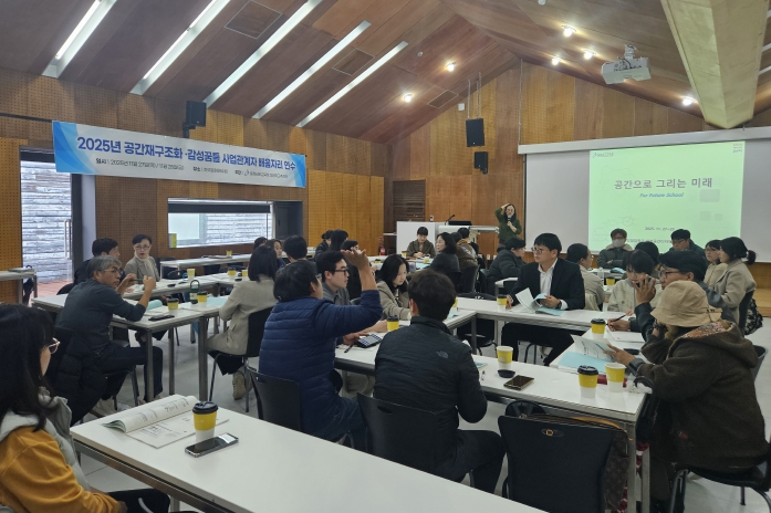 이번 연수에는 공간재구조화사업과 감성꿈틀사업을 담당하는 학교 업무 담당 교원, 교육지원청 업무 담당자, 건축사 등 학교공간혁신 사업 관계자들이 참여해, 교육과정과 수업을 담아내는 미래형 학교공간의 방향에 대해 함께 고민하는 시간을 가졌다.