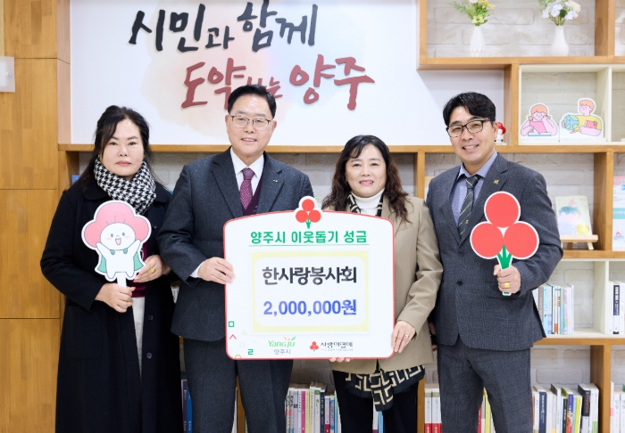 [메이저뉴스]양주시가 16일 한사랑봉사회로부터 이웃돕기 성금 200만 원을 기탁받았다.