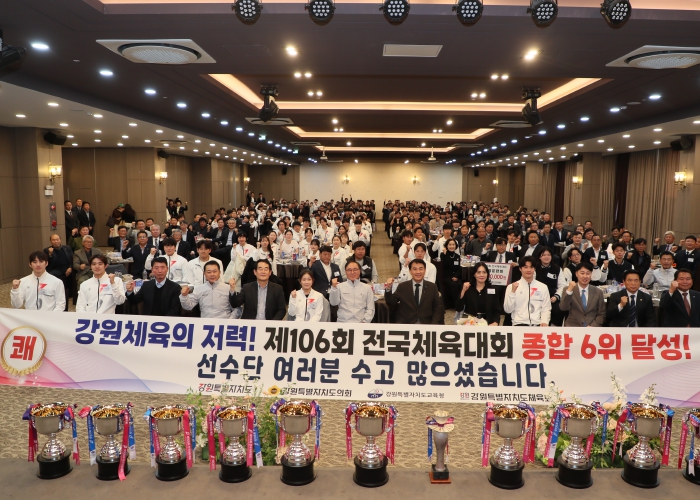 강원선수단은 지난 10월 17일부터 23일까지 부산에서 열린 제106회 전국체육대회에서 종합점수 40,042점을 획득, 1999년 이후 26년 만에 종합순위 6위, 메달순위 4위를 기록하며, 전년 대비 2,815점 상승해 2년 연속 성취상을 수상하는 쾌거를 거뒀다.