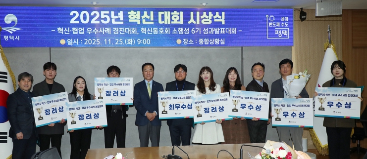 [메이저뉴스]평택시는 25일 시청 종합상황실에서 ‘2025년 평택시 혁신·협업 우수사례 경진대회’ 시상식을 진행했다고 밝혔다.
