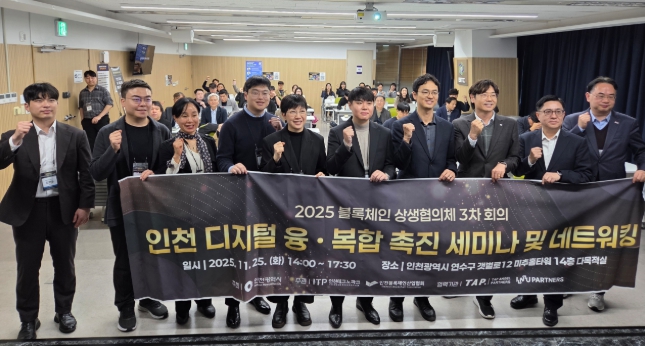 [메이저뉴스]인천광역시는 11월 25일 인천블록체인기술혁신지원센터에서 인공지능(AI)·블록체인 기술의 융복합을 촉진하고 관내 스타트업의 투자 유치를 지원하기 위해 ‘인천 블록체인 상생협의체 회의 및 네트워크 행사’를 성황리에 개최했다고 밝혔다.